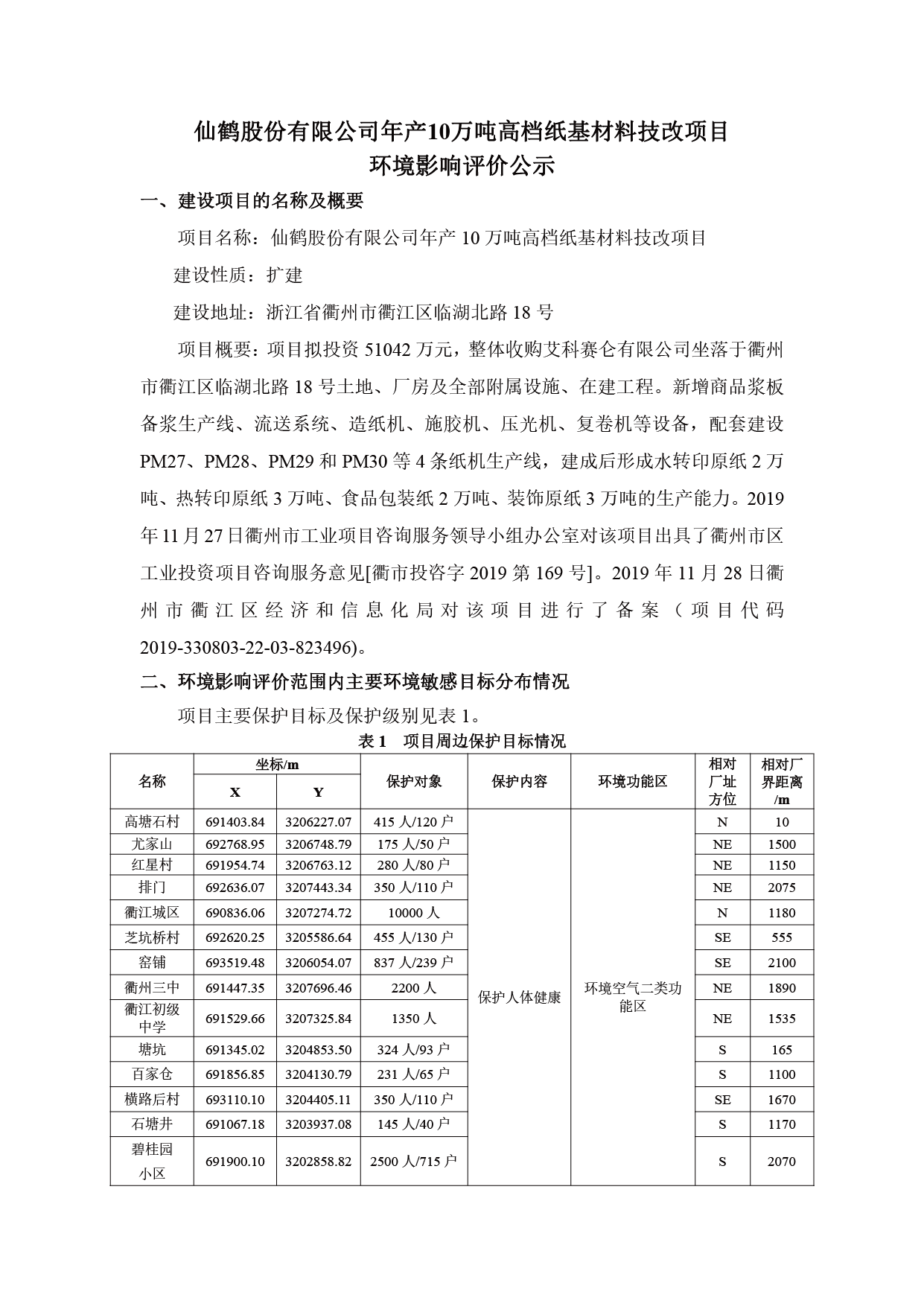 仙鶴股份有限公司年產(chǎn)10萬噸高檔紙基材料技改項目公參